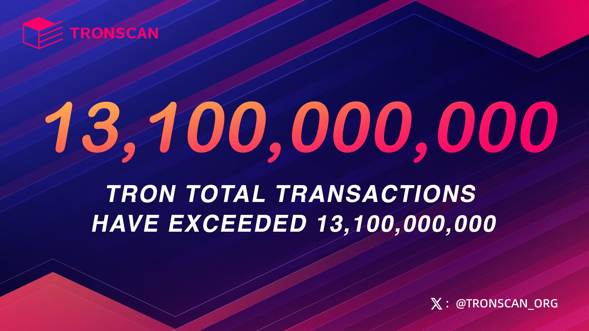 TRONSCAN D44.83K @TRONSCAN_ORG👏Congratulations! The total transactions on TRON exceeded 13.1 billion. With 366M+ total accounts, TRON continues to strengthen its position as one of the world’s leading blockchain networks. https://t.co/6xQ42GBvIF