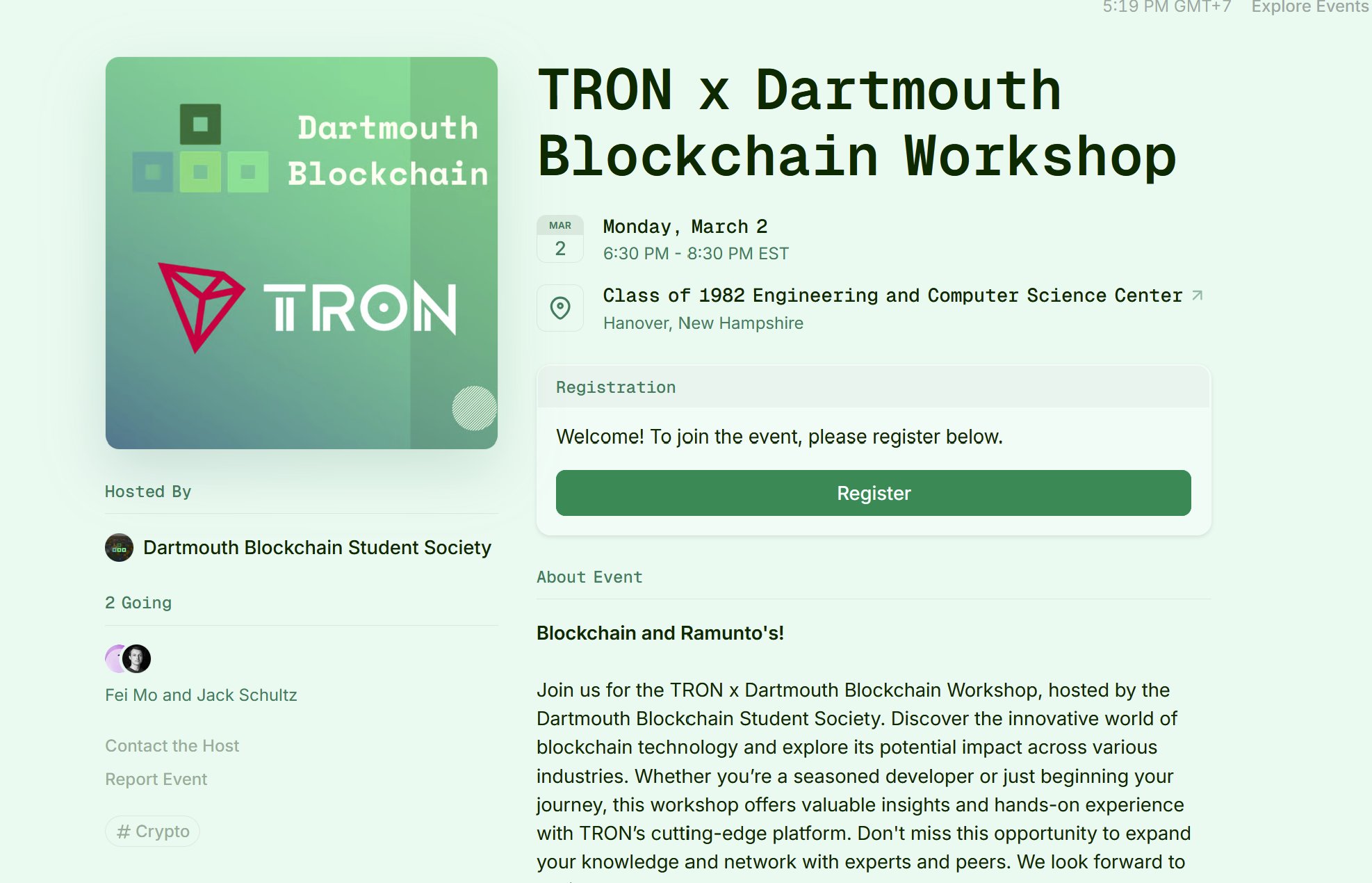 TRON DAO D1.76M @trondaoEducation and access matter. 📚 We're excited to participate in the TRON x @Dartmouth Blockchain Workshop on 3/2 at 6:30pm. See you there @Voxchain!