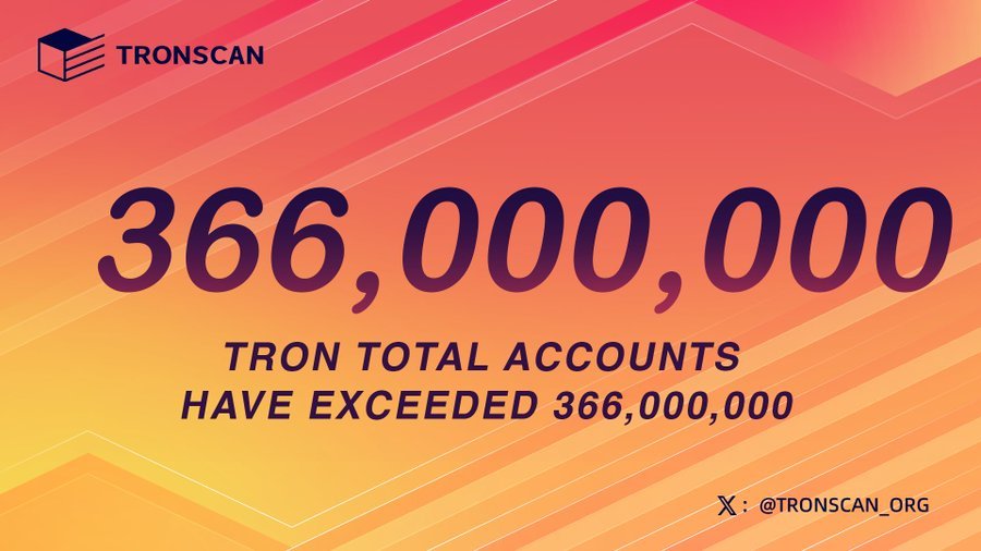 TRONSCAN D44.83K @TRONSCAN_ORG🎉 TRON’s total accounts have now surpassed 366 million! TRON ecosystem continues its rapid growth as we push forward on our mission to decentralize the future. https://t.co/aVkJCoR79U