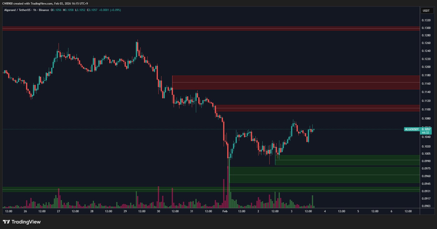 ALGO faces strong selling pressure at $0.11, making short-term breakout difficult.