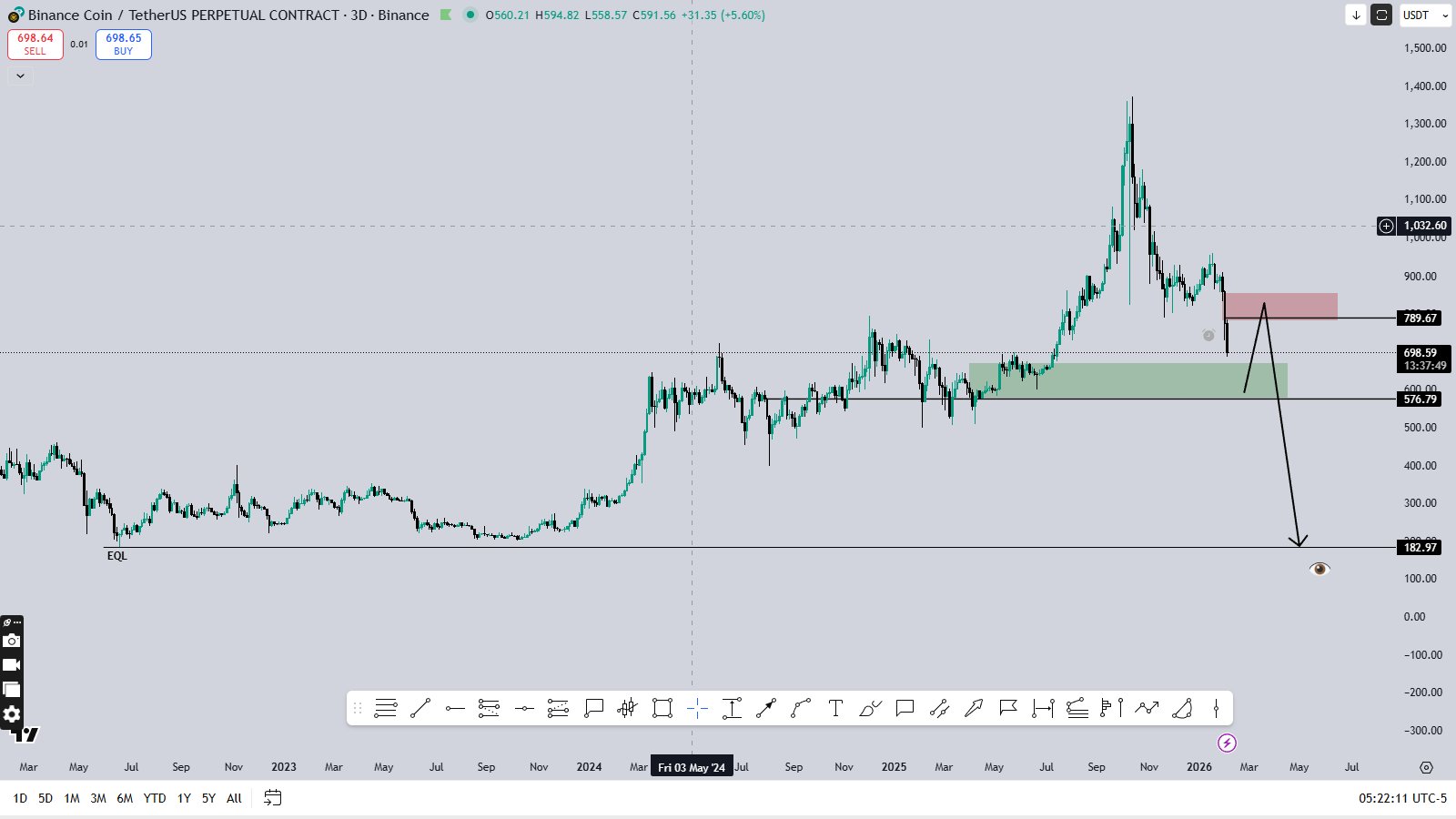 BNB faces huge risk, technical analysis predicts it will plunge to $182.