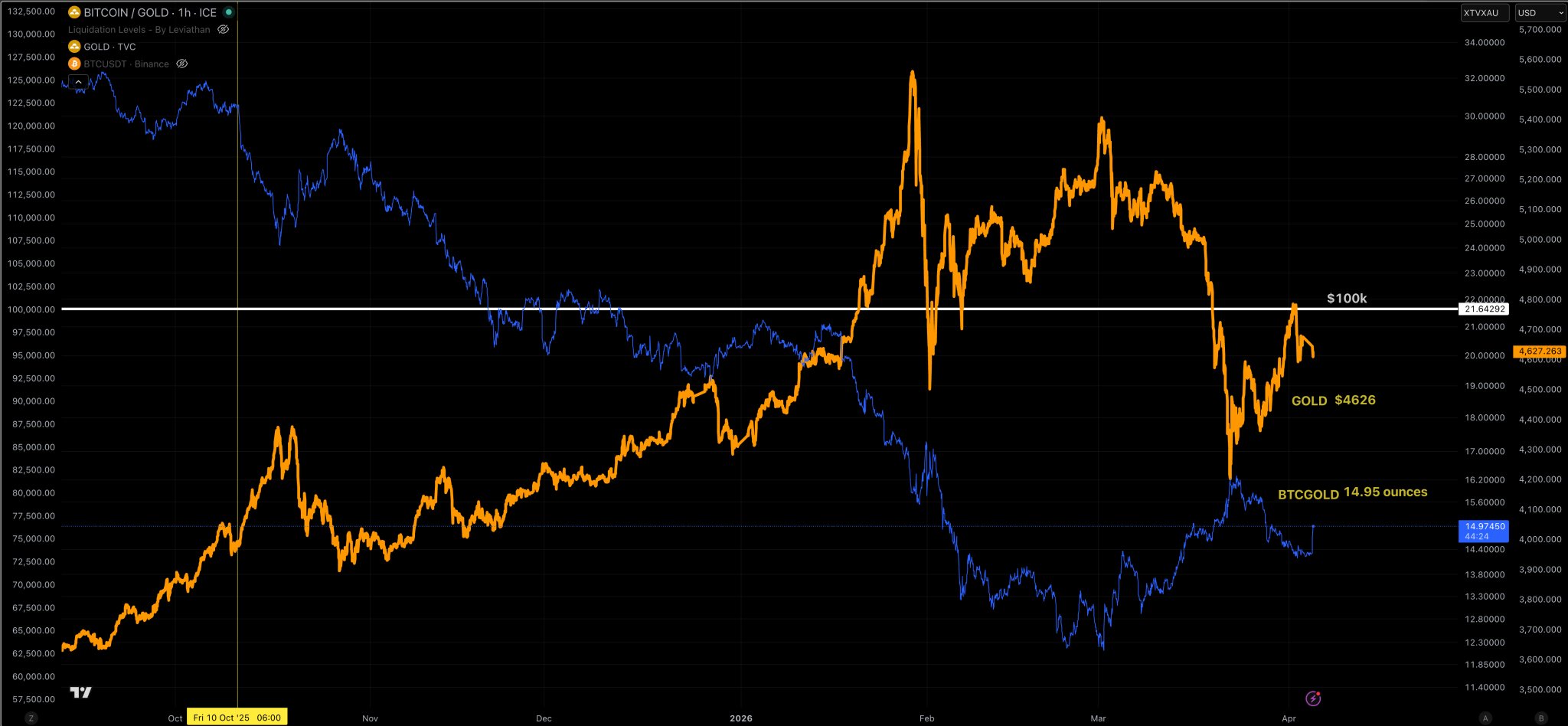 #Bitcoin 14.97 ounces of Gold - April 5th https://t.co/jXFT6pABmF