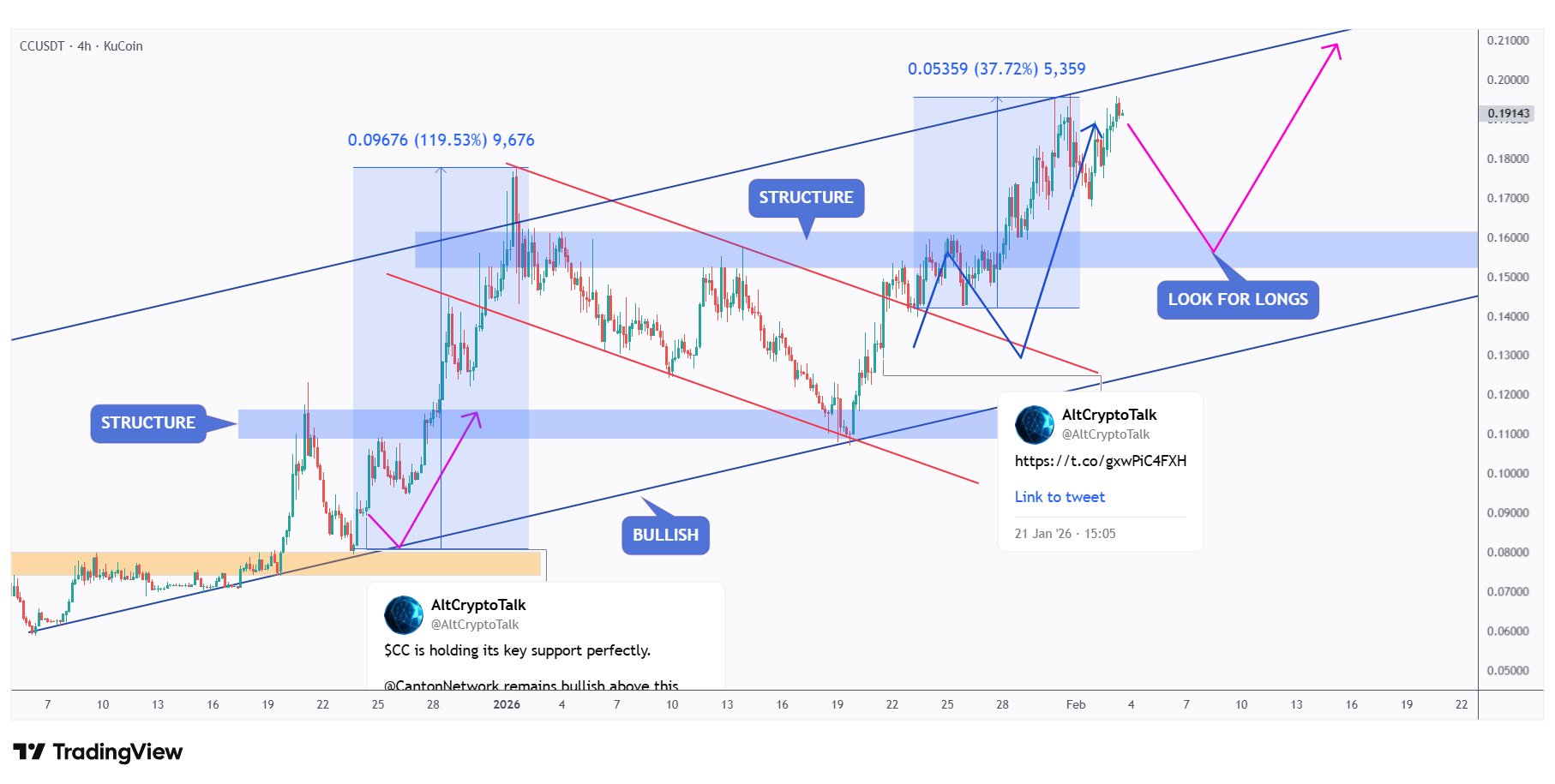 CC token shows a solid technical structure and an intact trend, suggesting looking for long opportunities after retesting the support level.