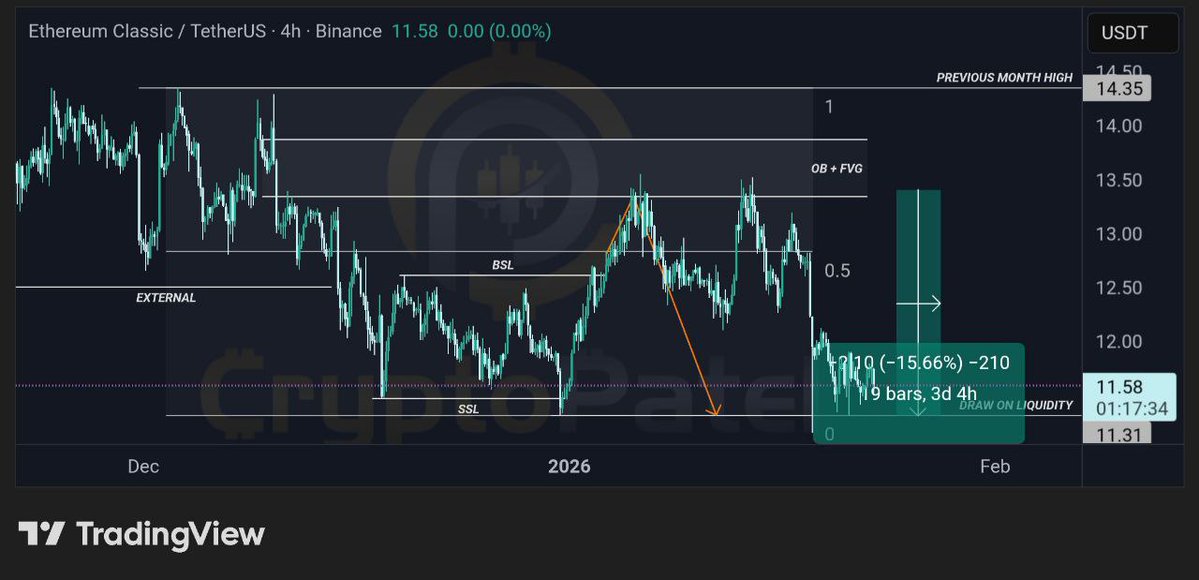 $ETC is showing a bullish divergence on the daily timeframe. If support holds, a relief bounce toward the $12 zone is possible. https://t.co/0notkxW1Se