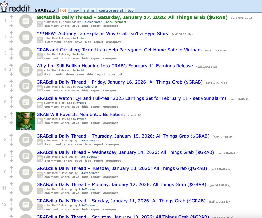 TIL there is a subreddit for $GRAB and its just mental illness at this point https://t.co/glKGZoFSfe