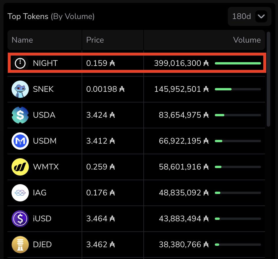 JUST IN: $NIGHT is approaching 400M $ADA in on-chain trading volume. https://t.co/wNXF3d7FMG