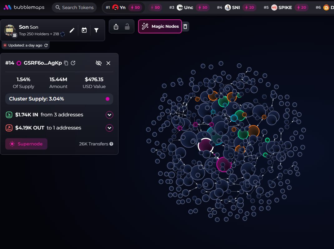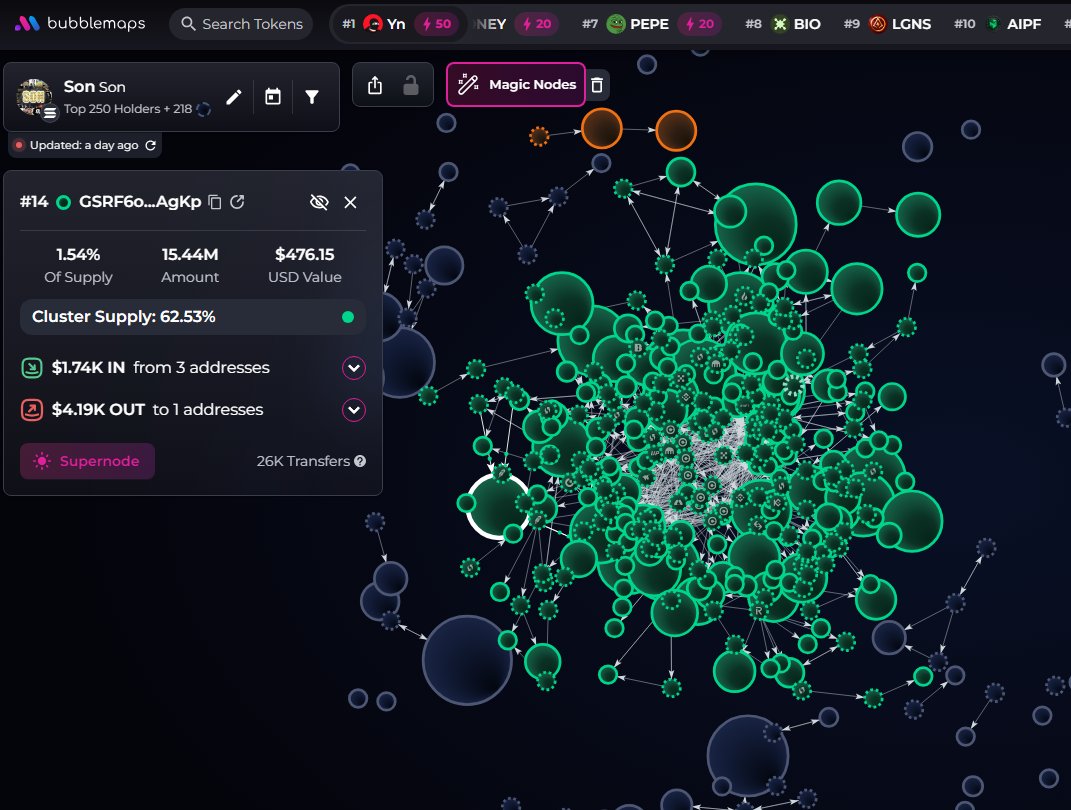 The SON token is suspected of insider manipulation, with highly concentrated holdings and early snipers having profited.