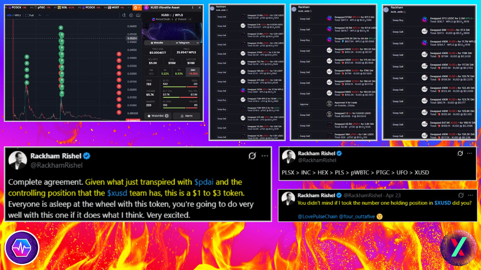 PulseChain. Holy mother of paper hands and sell pressure, Rackham wallet dumped xUSD and alts after buying the top.