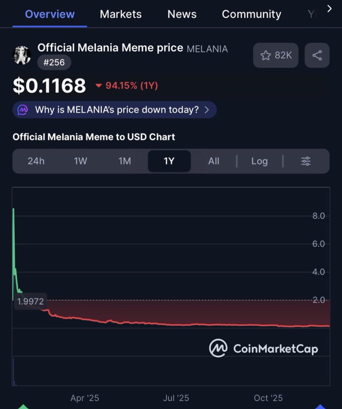 - روند MELANIA پس از انتشاربسیار نزولی