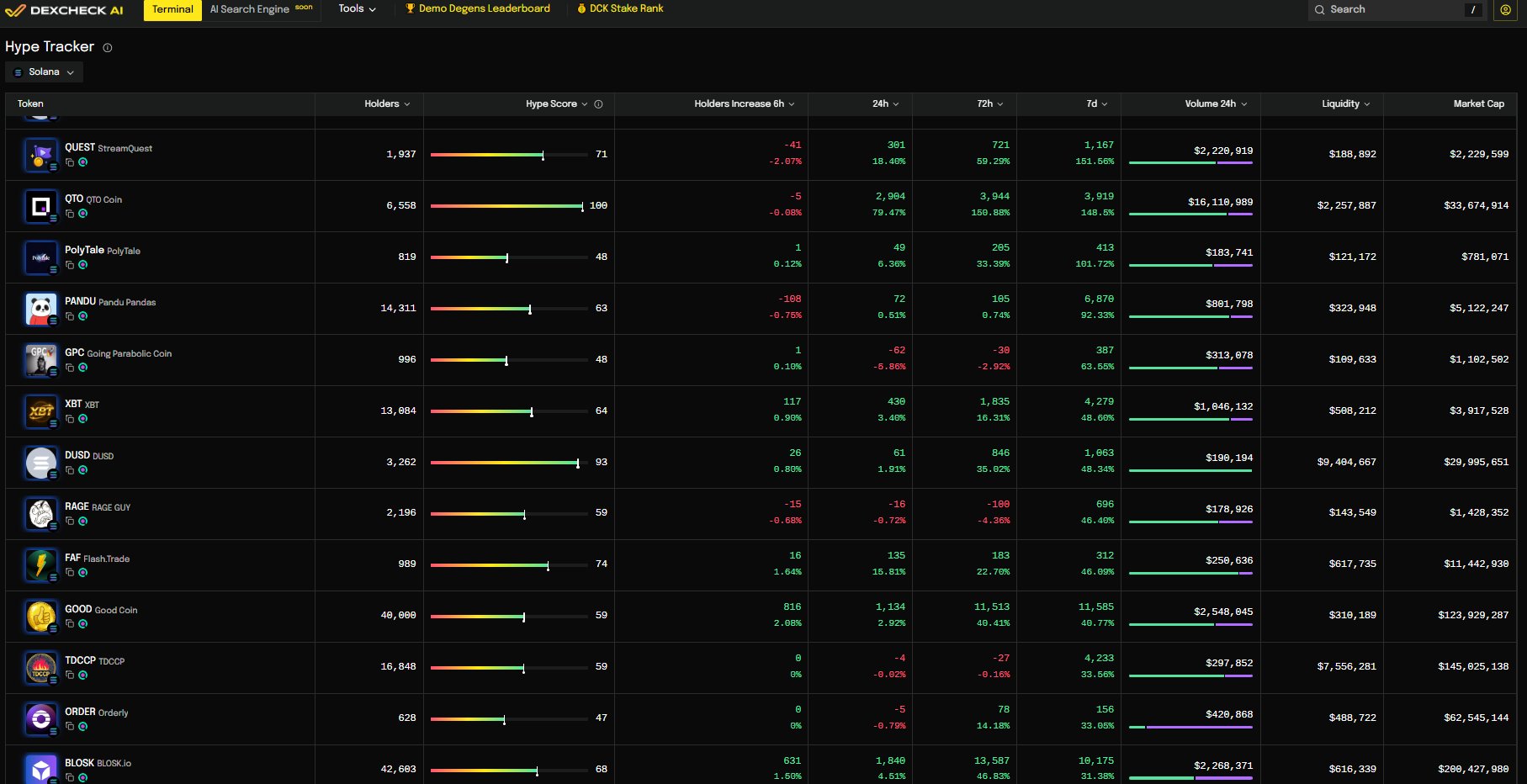 $QTO (@quanto) is up 620% this week and 16% in the past 24 hours, amidst a market-wide selloff. Hype indicator for the asset has reached maximum levels (100) following a 148% growth in onchain holders (+3,919). Trading activity has also climbed during this time, and mostly organic (79%). $QTO is unarguably one of this week’s best performers.