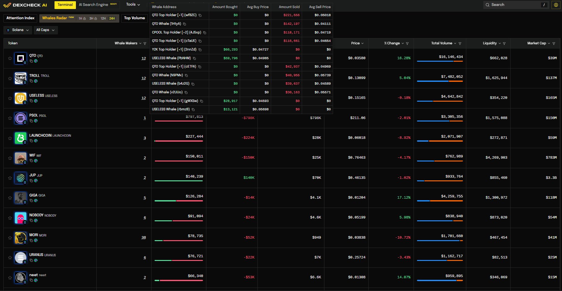 ➡️ Another top seller (https://t.co/WdgTZwaIz0); offloaded 9.8 million $QTO, realizing $370,000 $SOL.