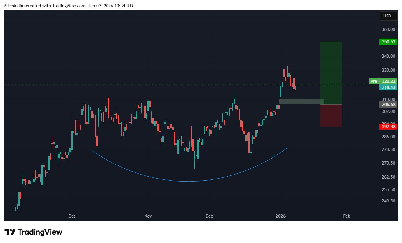 TSM breaks resistance, bullish technical pattern, target $350.52