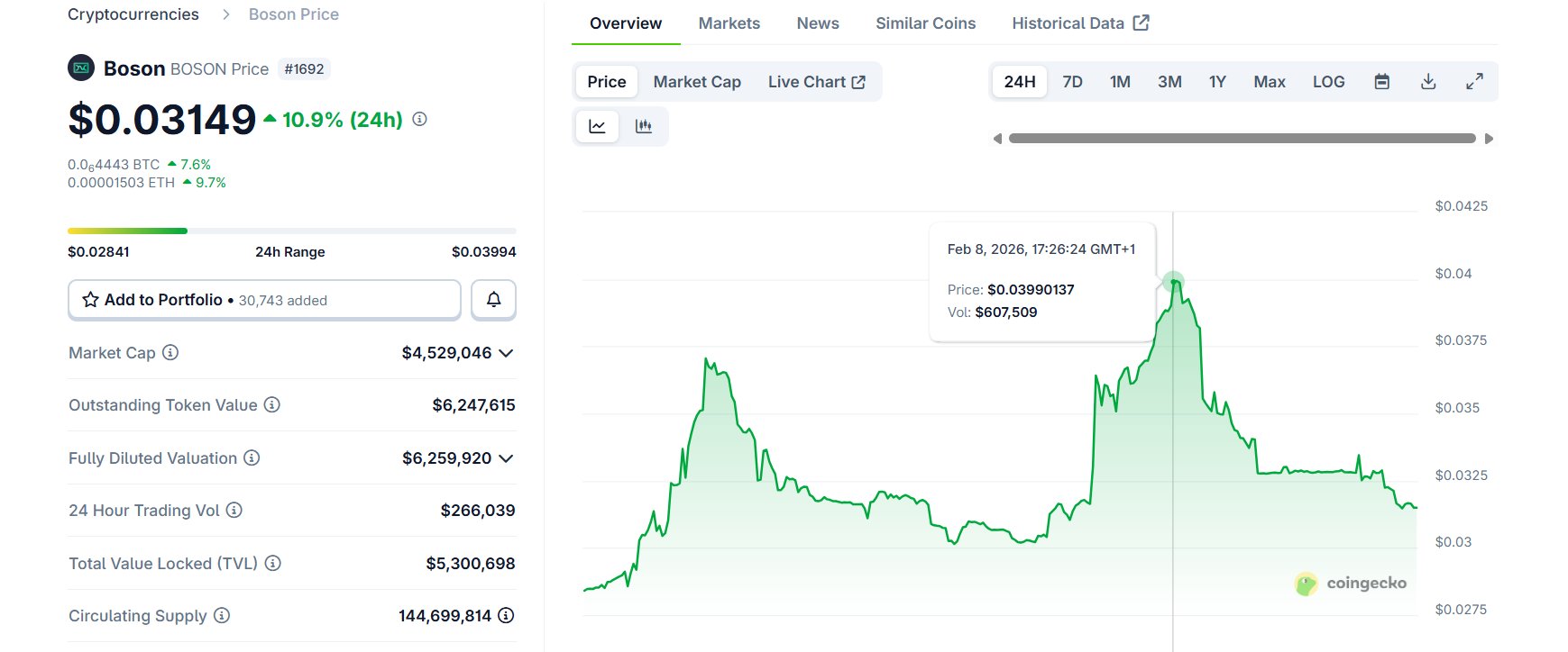 $ 0.029 (BOSON/USD)