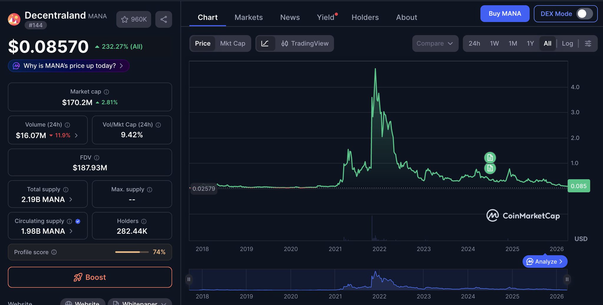 Decentraland D593.27K @decentraland428 69 91.82K オリジナル >リリース後のMANAのトレンド弱気