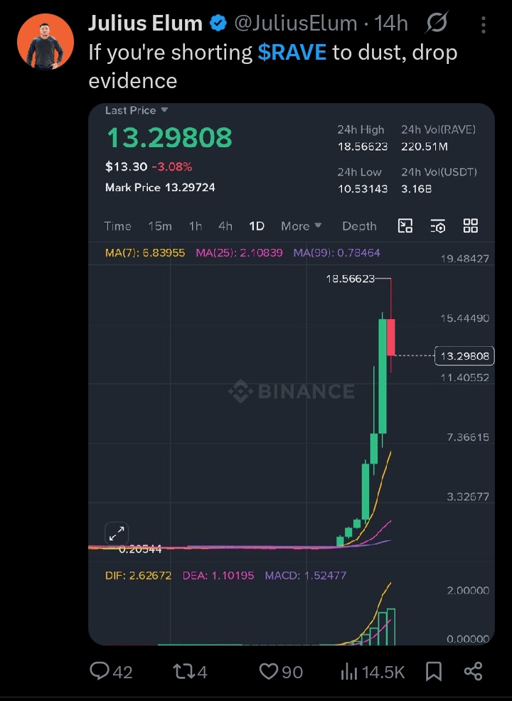 14 4 2.23K オリジナル >リリース後のRAVEのトレンド非常に弱気- リリース後のRAVEのトレンド強気