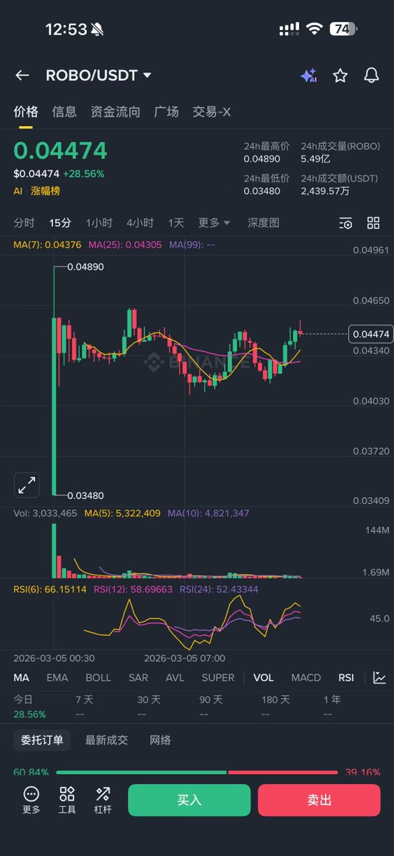 sanyi.eth FA_Analyst Trader C261.62K @sanyi_eth_Yesterday at a friend's house gathering, he was sighing. He thought there was only one alpha yesterday, but the second alpha airdrop was still $robo, turned out it was because of the issue with listing on bn spot... Actually, when this project was on Kaito, group members asked whether to go for it. I thought at the time that a market cap of 400 million was fine, even if the market was weak I shouldn't lose much. As it turned out, I didn't lose money but didn't make much either. Even at the current price I'm just breaking even with a small profit, which is acceptable in the current market conditions. Now bn and okx are both listed, only a few other major exchanges remain, still some room before a full sweep, we'll see slowly 🤣