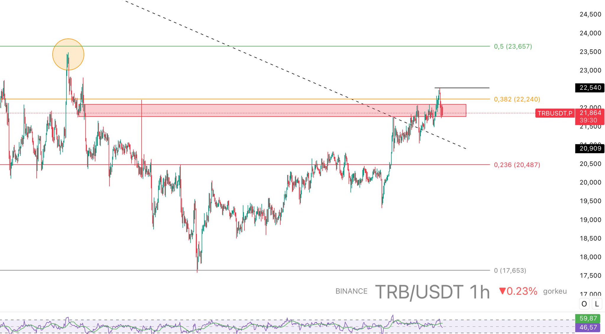 gorkeu TA_Analyst Trader B17.75K @Gorkeu⚡️ #TRB failed to break the $22.54 resistance with heavy consolidation and experienced a slight pullback. After the breakout, a re-test is occurring; if pressure builds in the overall market, it could retreat to the $21.10‑20.90 region. If positive dynamics take hold thereafter, it may rally again and create conditions to test and break the resistance. I will continue with updates.