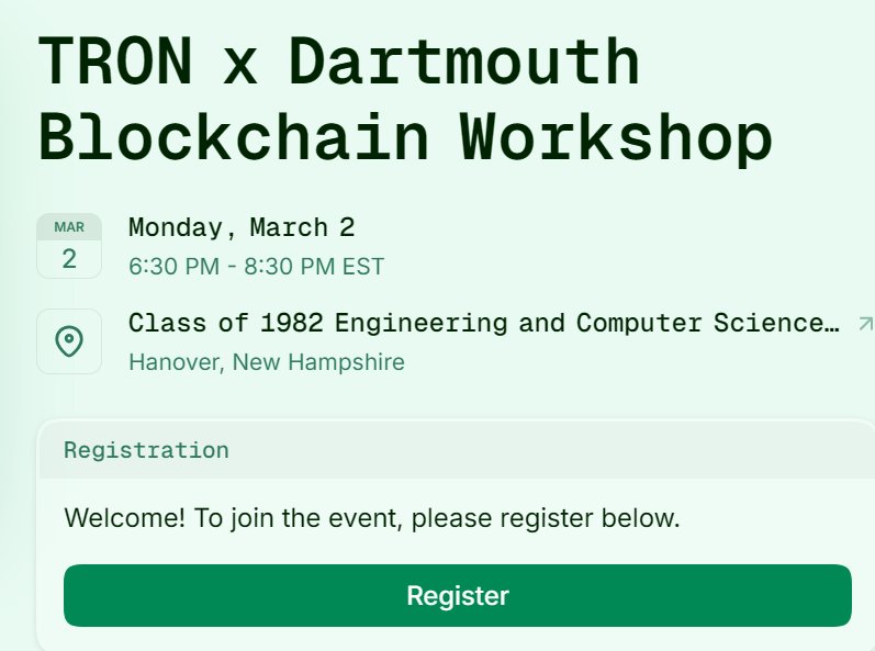 nbaluong 🟨 OnChain_Analyst DeFi_Expert A8.21K @luong4101992TRON x Dartmouth Blockchain Workshop - Connecting academia and practical Web3 infrastructure @trondao will participate and co-organize the workshop together with the Dartmouth Blockchain Student Society, delivering an in‑depth session on blockchain technology and its real‑world application potential across various industries. The event is not only for experienced developers but also open to newcomers who are beginning to explore Web3. Attendees will have the opportunity to: - Learn how TRON operates at a global scale - Get hands‑on experience with high‑performance blockchain infrastructure - Connect with builders, students, and industry experts A highlight of the workshop is the presence of Mr. Sam Elfarra – Ecosystem Development PMO & Community Spokesperson of TRON DAO. With over 7 years of experience in crypto, Sam has played a key role in expanding the TRON ecosystem through strategic partnerships and builder support programs. Through the TRON Builder Tour, Sam has worked with and advised many top universities such as Harvard, Princeton, MIT, Columbia, Northeastern, and UCI. Continued presence at Dartmouth demonstrates TRON’s clear strategy: investing in education and nurturing the next generation of Web3 builders. About TRON DAO TRON DAO is a community‑governed organization focused on advancing Internet decentralization through blockchain and dApps. Founded in 2017 by Justin Sun, TRON now boasts: - More than 365 million accounts - More than 13 billion on‑chain transactions - More than $22 billion TVL - More than $83 billion USDT circulating on the network TRON is recognized as one of the world’s largest settlement stablecoin layers, handling daily payments at a global scale. This workshop is not only a technical sharing session but also the next step in TRON’s long‑term strategy: linking blockchain infrastructure with academic environments, fostering innovation, and expanding Web3 adoption from an educational platform. If you are interested in blockchain, DeFi, digital payments, or building Web3 products – this is an event worth attending. Follow @trondao @TronDao_VIE @justinsuntron for more updates on TRON #TRONGlobalFriends