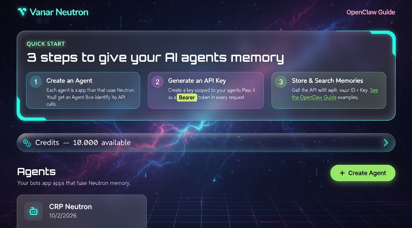EyeOnChain OnChain_Analyst Trader C5.51K @EyeOnChainAnother one of those updates that quietly changes everything for $VANRY holders… and honestly, for the whole @Vanarchain ecosystem. @openclaw agents can now remember. Not just for a session. Not until a restart. Permanently. With Neutron a core product built on #Vanar -- intelligence finally outlives the process. You can shut an agent down, spin it up on a new machine, replace it entirely, and the memory is still there. Same knowledge. Same context. No reset button. That’s a big shift. Up until now, #OpenClaw agents relied on local files for memory. It works… until it doesn’t. Restart the agent, move environments, or let it run long enough and that “memory” turns into technical debt. Heavy context, higher costs, and fragile behavior. Neutron steps in and cuts that ceiling clean off. Memory stops living on a filesystem and starts living as infrastructure. What’s clever is how Neutron handles it. Instead of dragging full histories around, it compresses what actually matters into knowledge objects the agent can query when needed. Context stays lean. Token costs drop. Suddenly, always‑on agents and long‑running workflows feel practical instead of experimental. Learning compounds instead of getting wiped. There’s also a control angle here that doesn’t get talked about enough. Local memory is easy to corrupt. Plugins overwrite it. Prompts poison it. And half the time you don’t even know why an agent behaves the way it does. Neutron adds lineage. You can see what was learned, when it was learned, and from where. You can decide what’s allowed to write to memory and what isn’t. That’s how you keep autonomy without chaos. This is where Neutron really separates itself from things like Supermemory. Supermemory helps with recall, sure, but it’s still rented memory. Opaque, vendor‑owned, tied to a service. Neutron treats memory as a layer of infrastructure. Agent‑agnostic. Portable. Durable across time. Agents come and go… the knowledge stays. OpenClaw proved agents can act. Neutron makes sure what they learn survives. Together, it’s one of the strongest setups out there right now. If you want to try it yourself, OpenClaw is offering free credits here → https://t.co/FodvVivmVS An agent that forgets is disposable. One that remembers permanently… that’s infrastructure. And that’s exactly why $VANRY keeps getting more interesting.