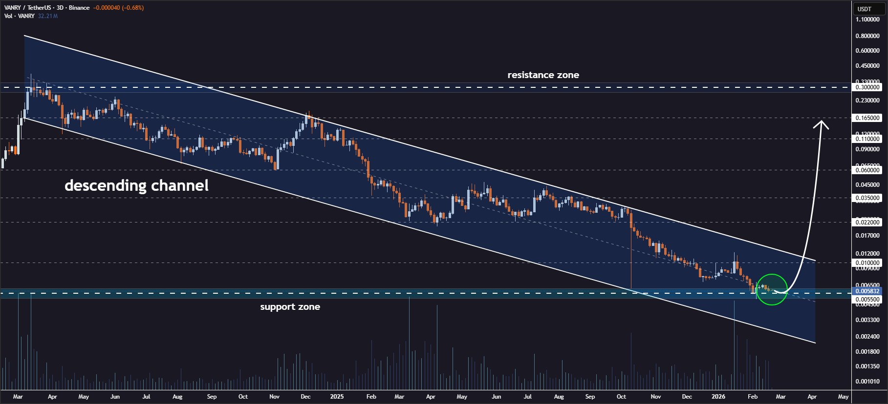 - 概要VANRY shows a mid-term rebound within a downtrend channel, support is solid, but the price fell 4.5% yesterday, still below the expected target.