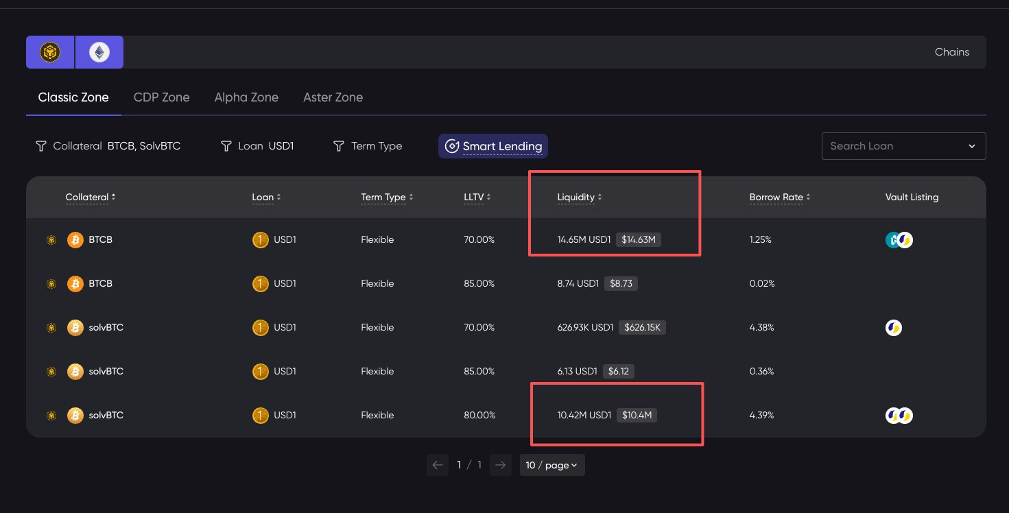 When USD1 Binance savings subsidies were available, the moment BTCB was pledged in Lista to borrow USD1, all the USD1 was borrowed instantly, and the borrowing rate on @VenusProtocol surged to 15%. I could only switch to borrowing some SolvBTC, which pushed the annual yield up to 6%.