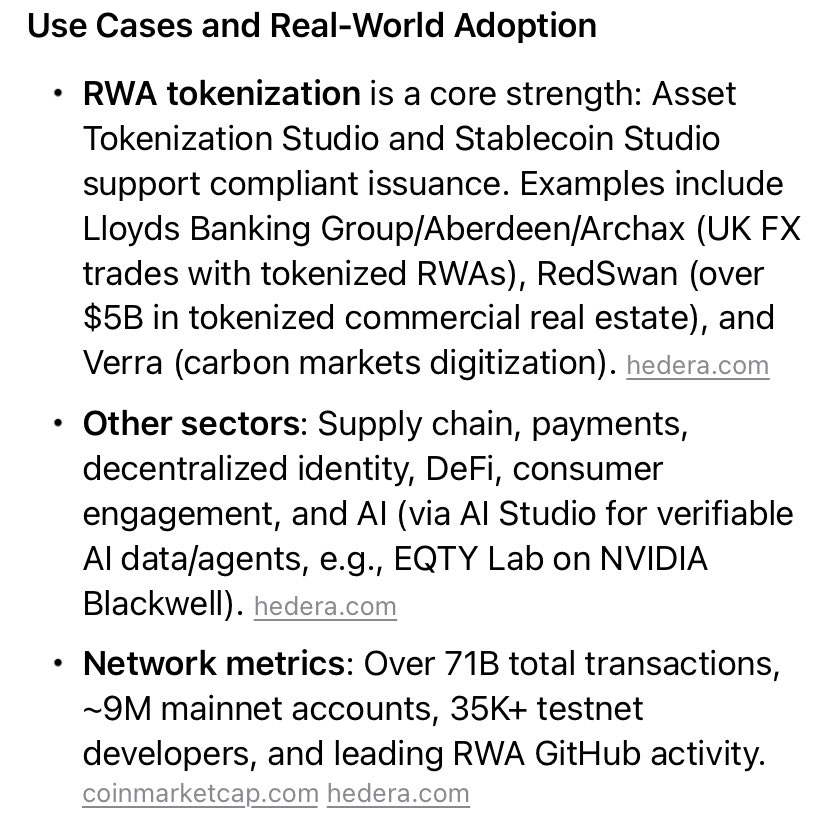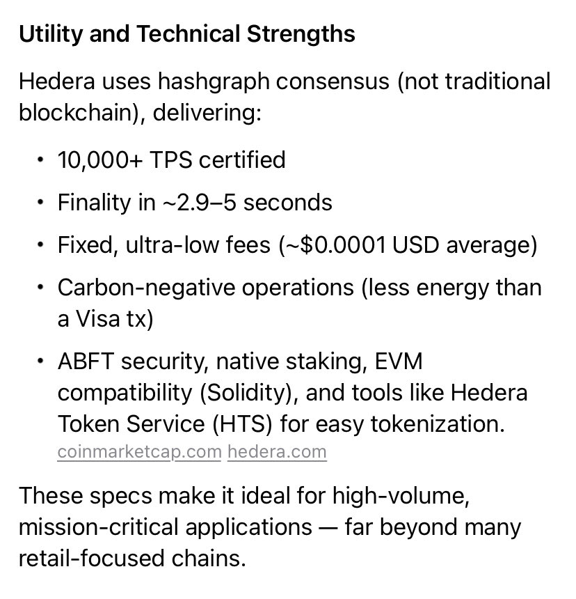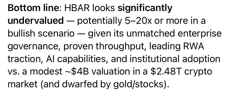 HBAR is severely undervalued, with a 5-20x upside potential, and has strong enterprise-grade applications and technical advantages.