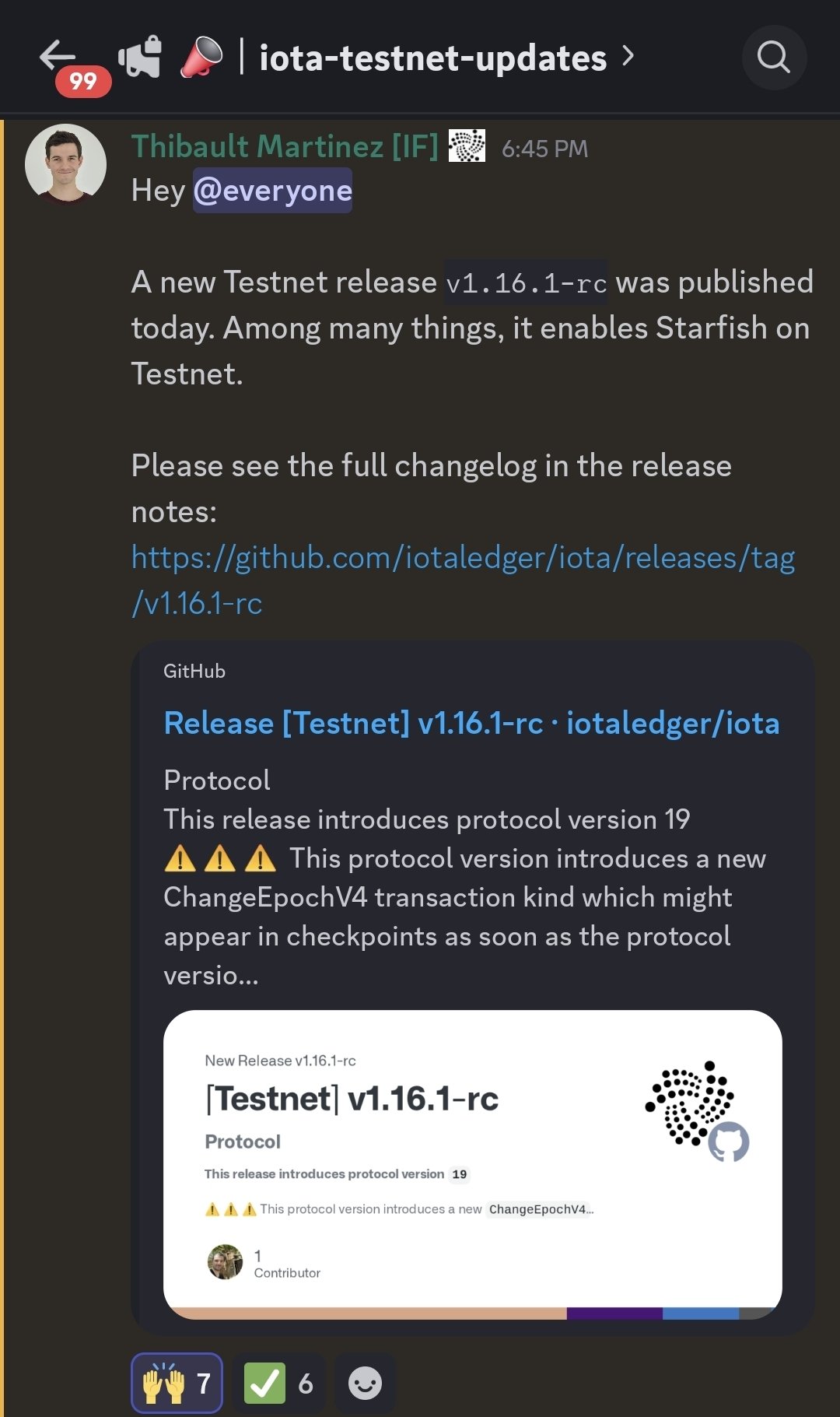 IOTA protocol update, Starfish testnet is live, performance improved and supports mainnet passkey, preparing for global adoption.
