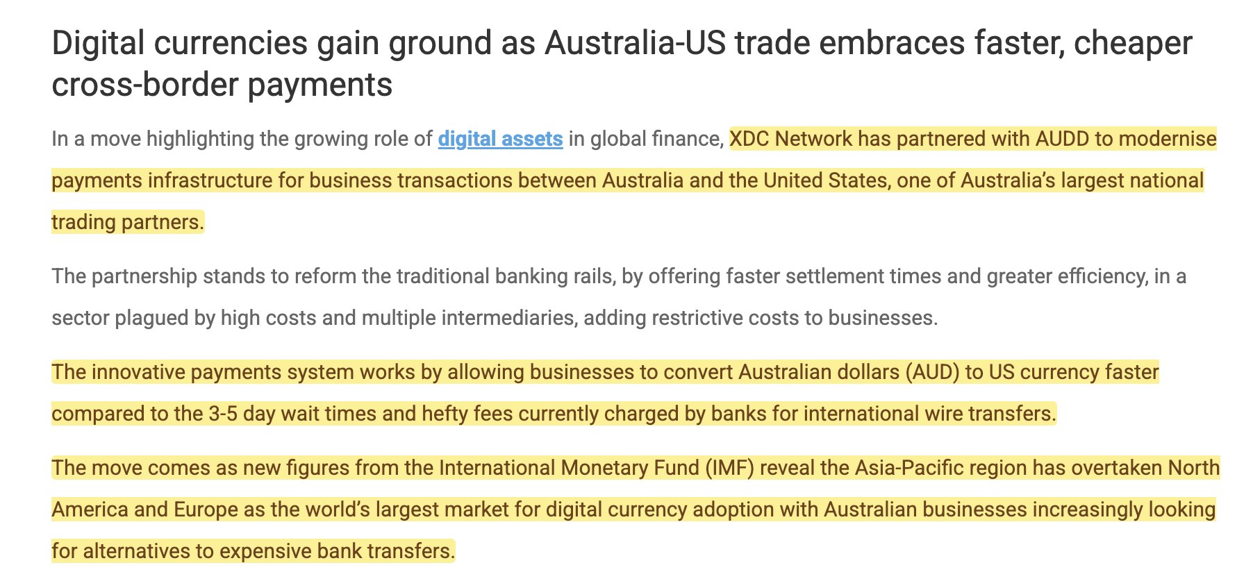 $XDC Network has partnered with AUDD to modernize payments infrastructure for business transactions between Australia and the United States, one of Australia’s largest national trading partners. 🥶 https://t.co/exuzta8tEb
