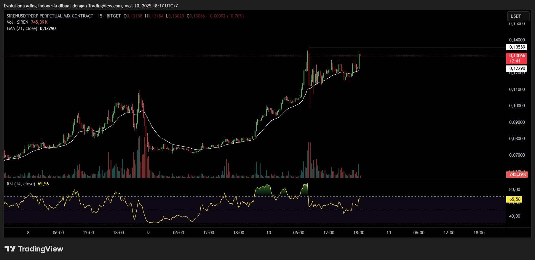 SIREN is facing a key resistance at 0.13589. If it fails to break through, combined with a weak RSI divergence, be alert to the risk of reversal.