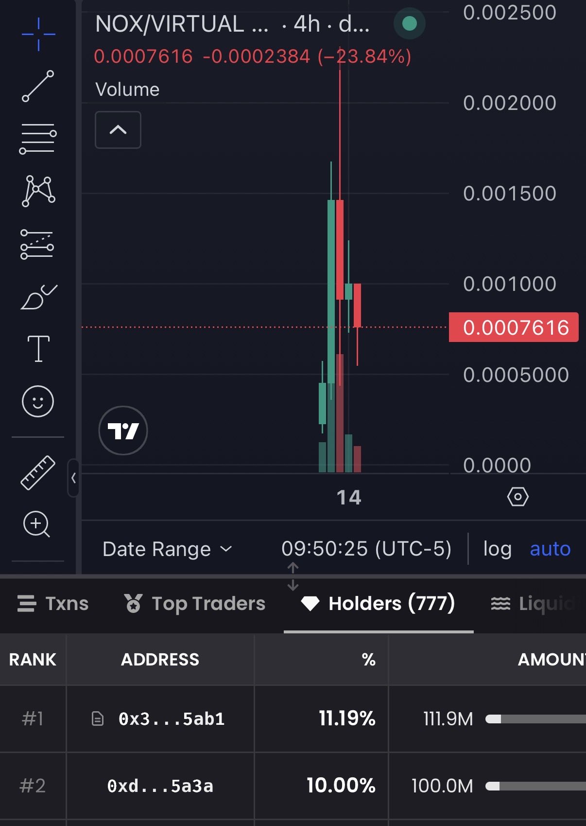Chyan | chyan.base.eth 온체인 분석가 인플루언서 C12.24K @Chyan84 11 16.59K 원본 >VIRTUAL의 출시 후 추세중립