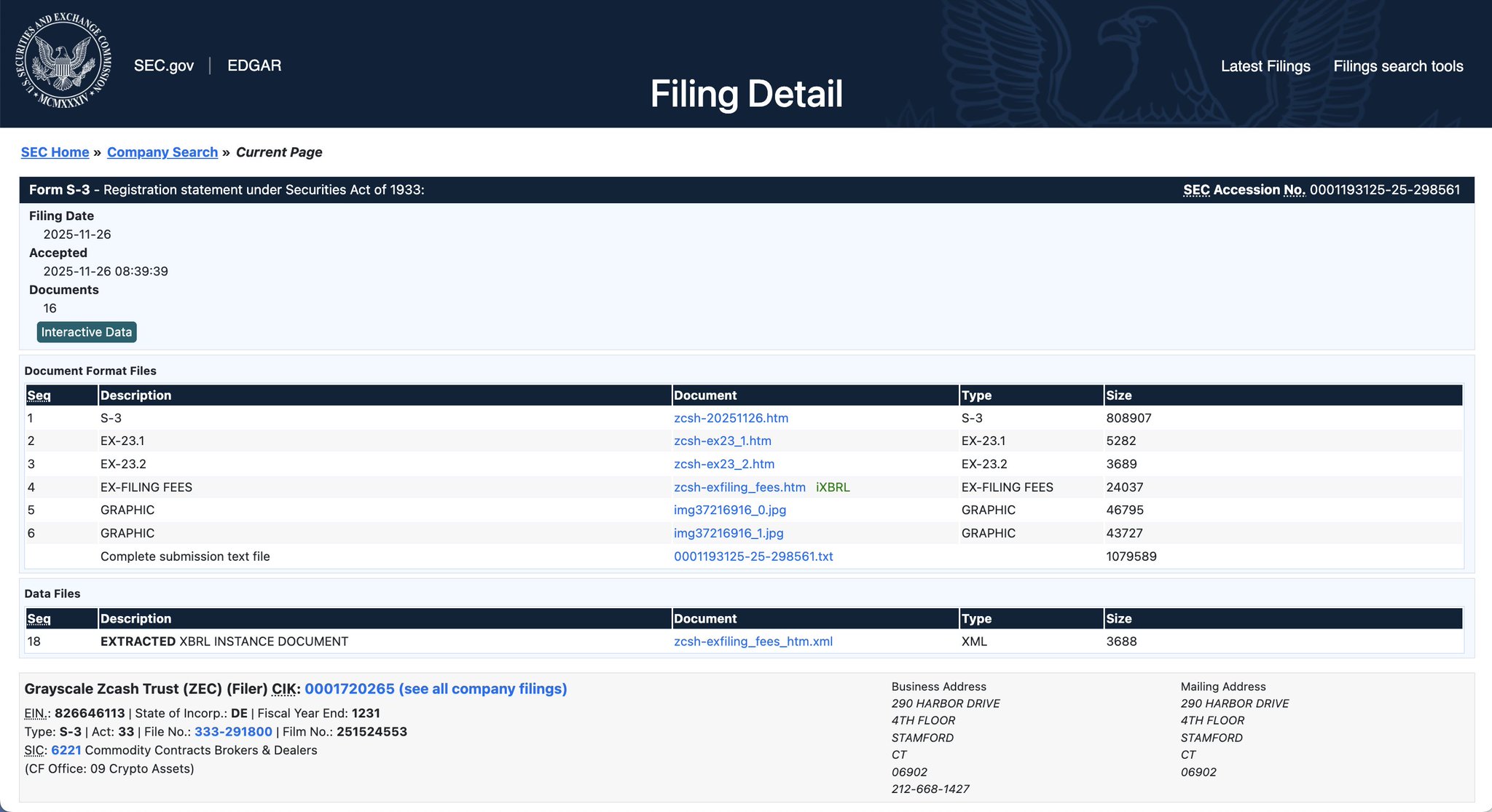 오늘 아침 Grayscale은 ZCSH(그들의 Zcash 트러스트)를 ETP로 전환 신청을 제출했다. 이 신청은 즉시 GBTC‑스타일 할인 트레이드의 초기 구도를 만든다.