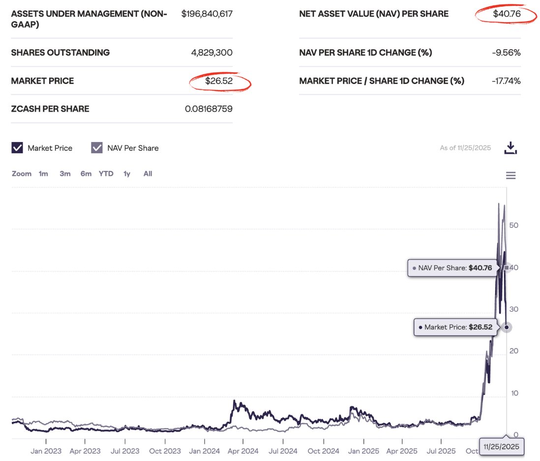 $ZCSH 주변에 GBTC 스타일의 할인 왜곡이 나타났다는 사실이다.