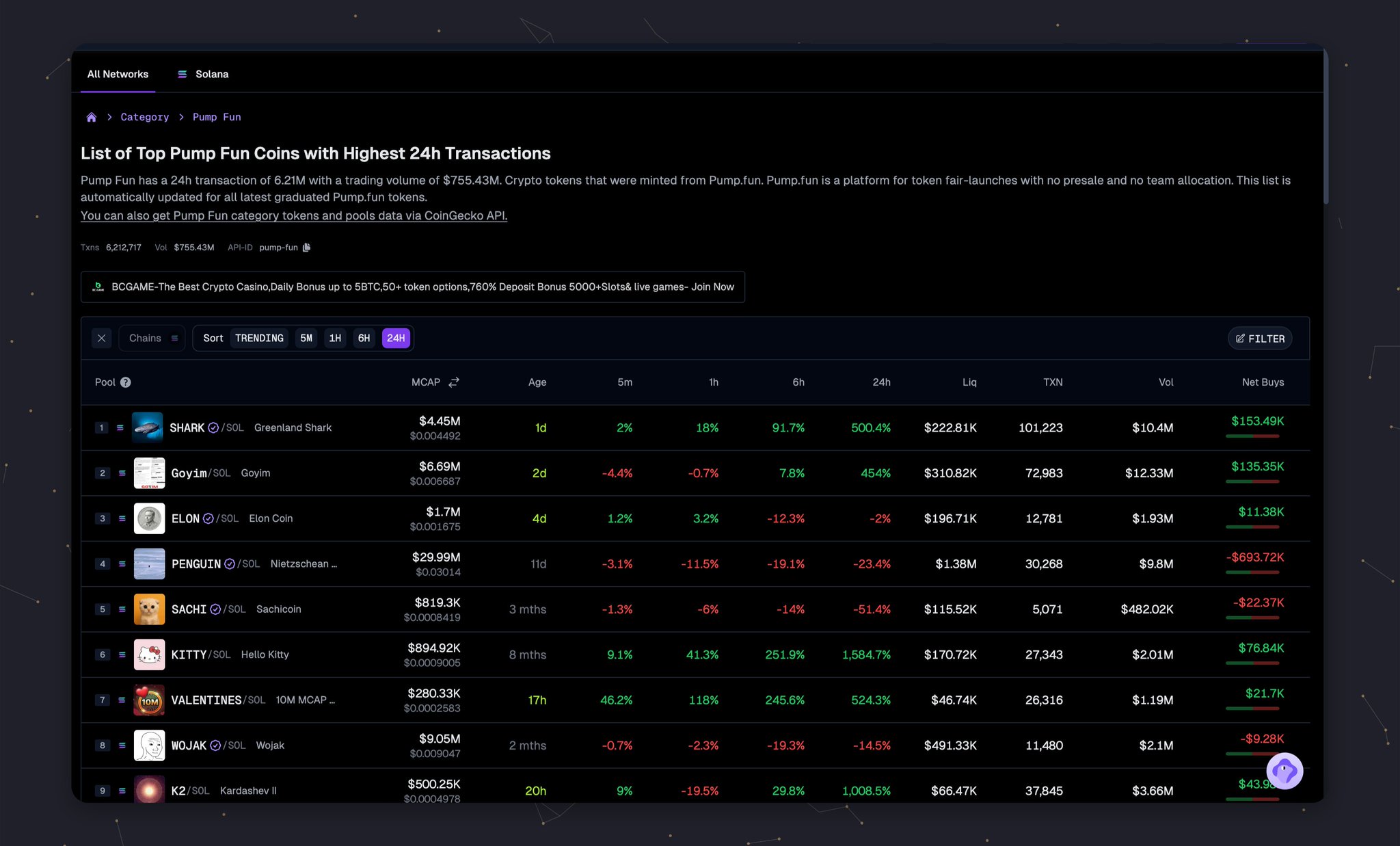 그때 직감이 작동했습니다: GeckoTerminal → 트렌딩 카테고리.