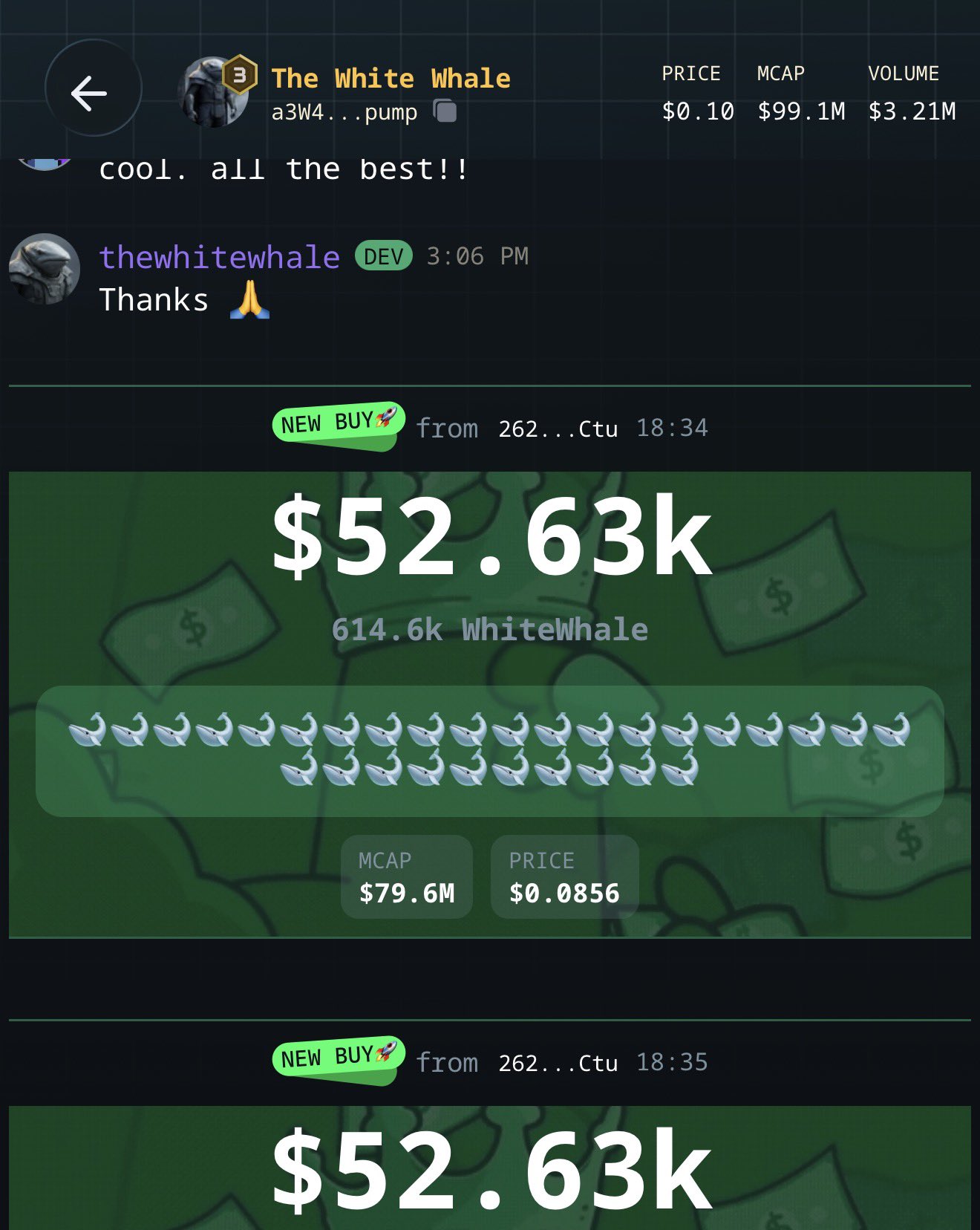 오늘만 해도 약 $200K 가치의 $WHITEWHALE이 구매되었습니다