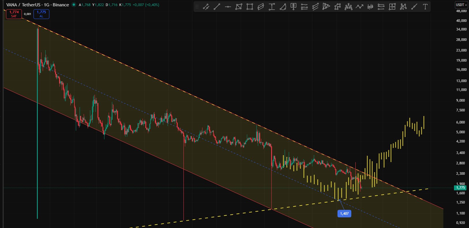 Vana (VANA) is a cryptocurrency launched in 2024and operates on the Ethereum platform. Vana has a current supply of 112,641,600 with 30,084,000 in circulation. The last known price of Vana is 1.79368488 USD and is down -0.98 over the last 24 hours. It is currently trading on 117 active market(s) with $6,994,393.46 traded over the last 24 hours. More information can be found at https://www.vana.org/.