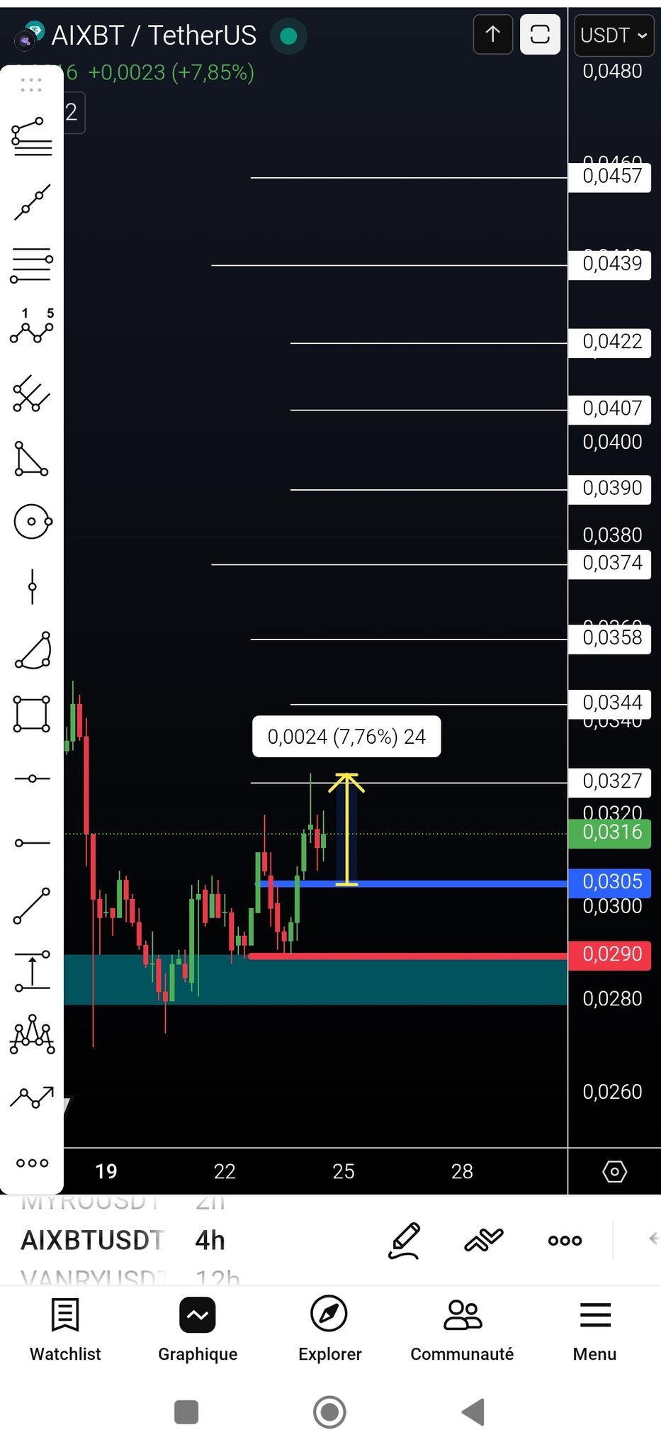 The tweet recommends entering AIXBT at the current price with a stop loss, and it has risen 8% so far.