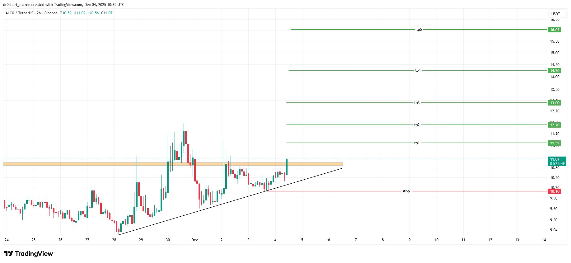 ALCX technical analysis shows an uptrend, and after breaking resistance, it is expected to reach multiple take-profit targets.