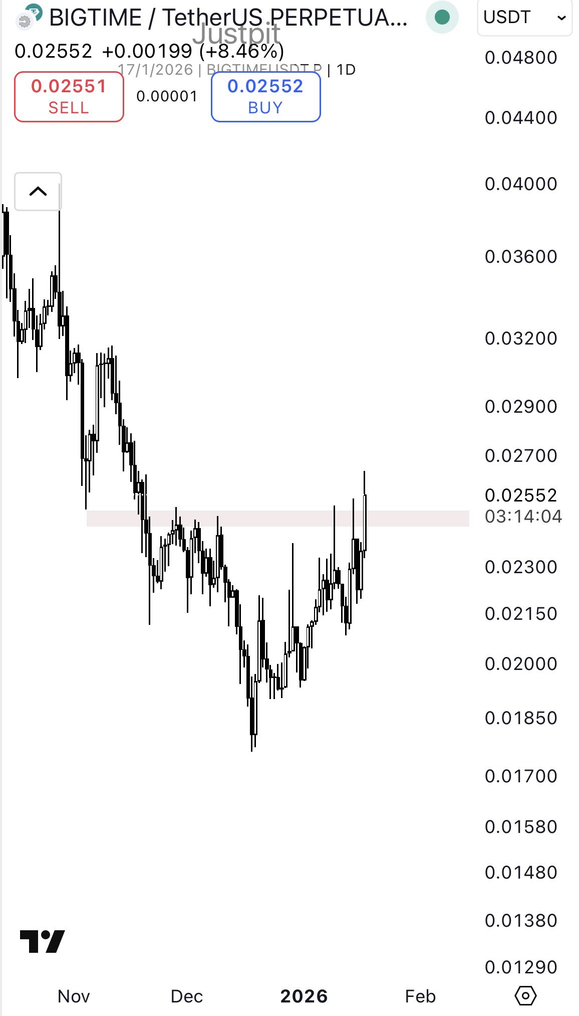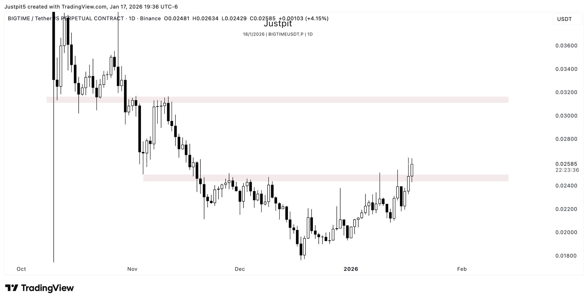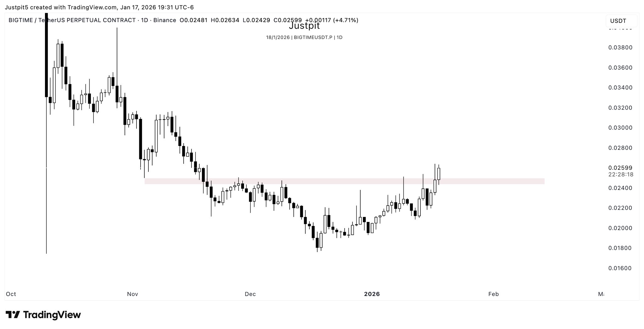 BIGTIME price has broken a key resistance level, showing strong upward momentum.