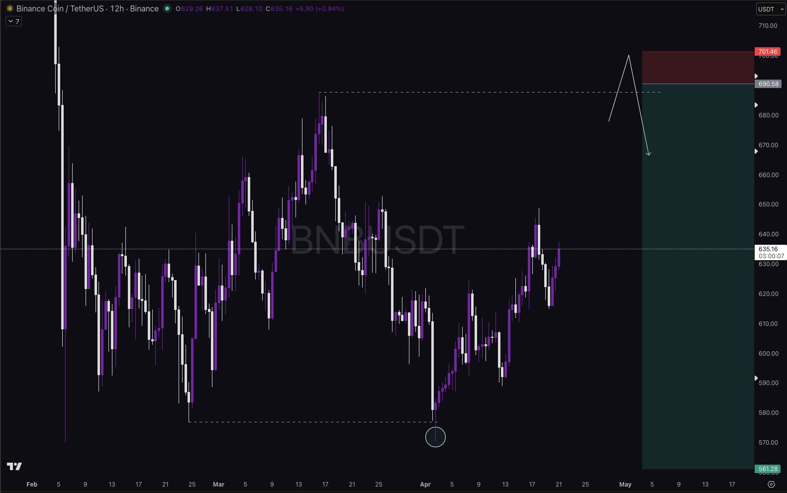 The author plans to short BNB after sweeping away upper liquidity, targeting a relatively low price.