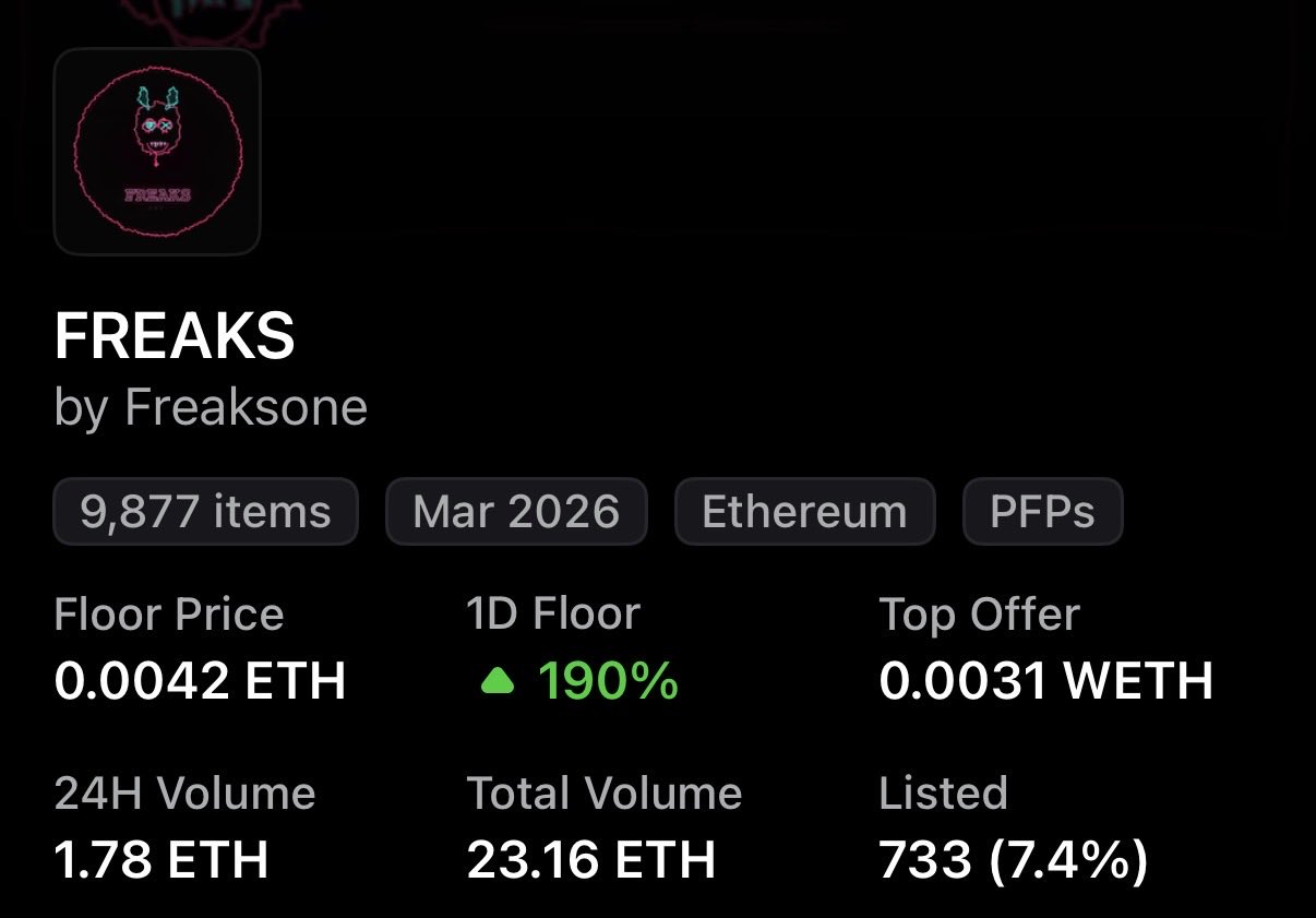 FREAKS NFT floor price jumped 190% in one day to 0.0042 ETH, the author is considering joining the mutation.