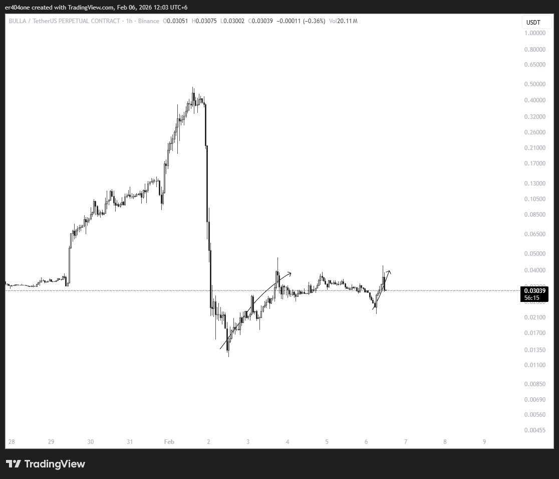 BULLA is accused of being a scam token manipulated by a CEX, and the chart shows its price undergoing massive spikes and crashes.
