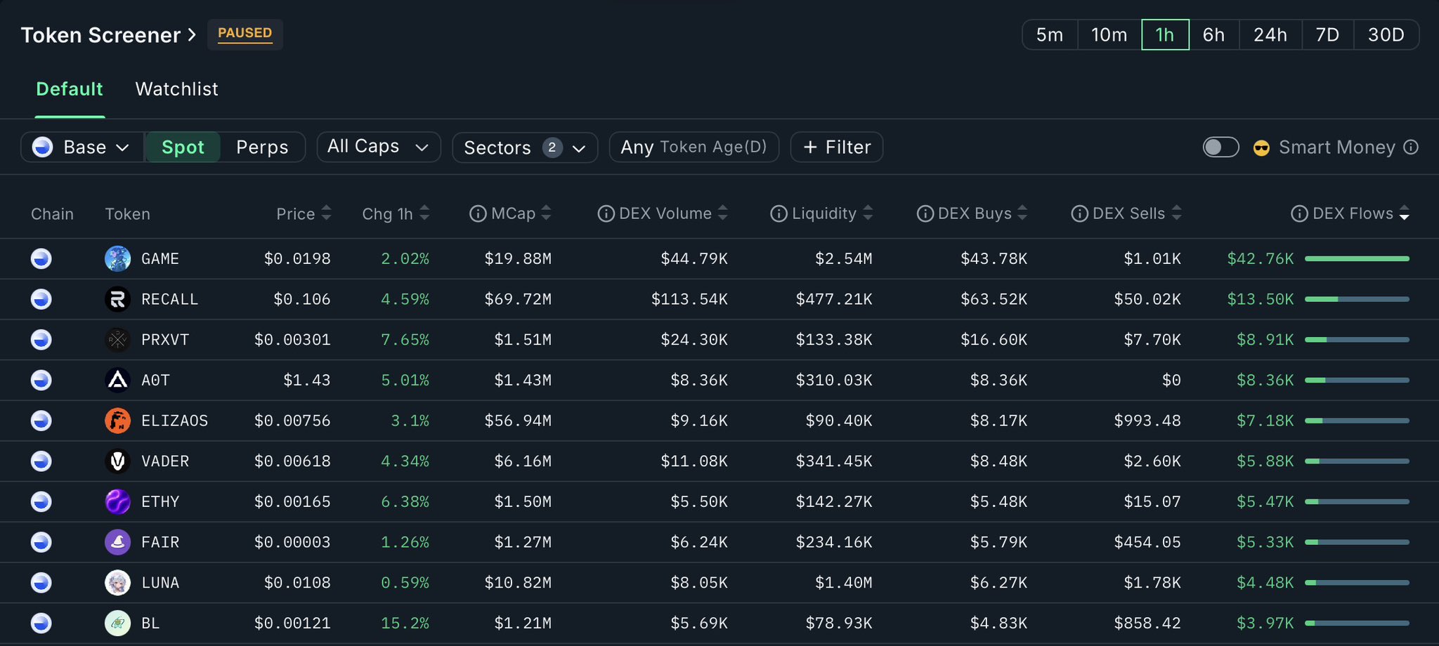 🚨 @base AI Agents 1H DEX Flow Check via @nansen_ai