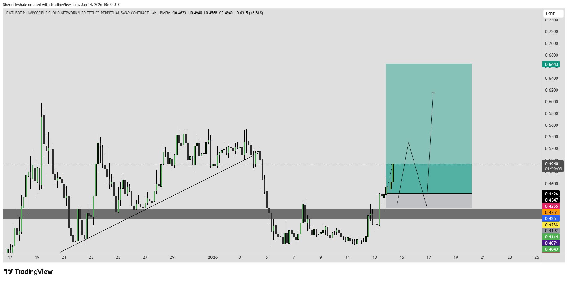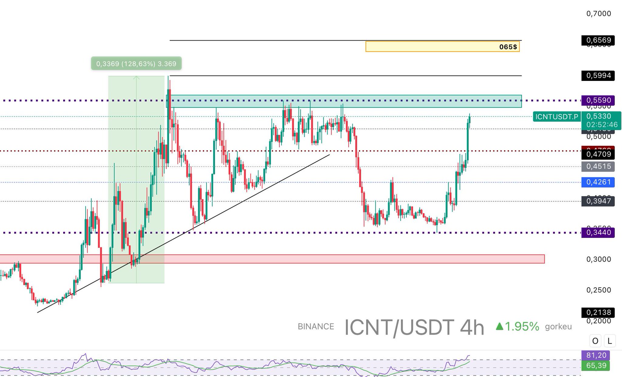 📈 Last time with #ICNT we achieved over 120% profit. Now it is testing resistance at the $0.53 level. If this resistance breaks, it means a move above the blue box and could target the $0.60‑0.65 range.