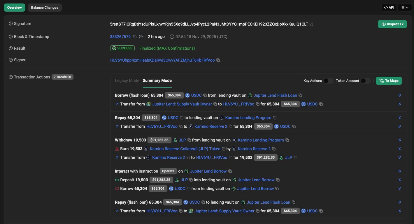 Here’s an example of a user refinancing a $91k collateral position from Kamino to @jup_lend in a single click. (no slippage)