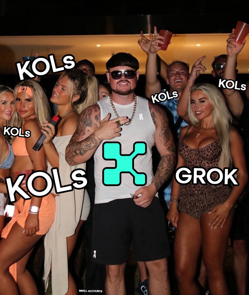 The tweet image shows KOLnet community activity and mentions GROK, with no clear trading guidance.
