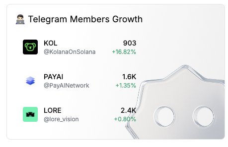 Tgmetrics points out that Telegram member growth is a key indicator for predicting market interest in crypto projects, and lists KOL, PAYAI, LORE as the fastest-growing projects recently.