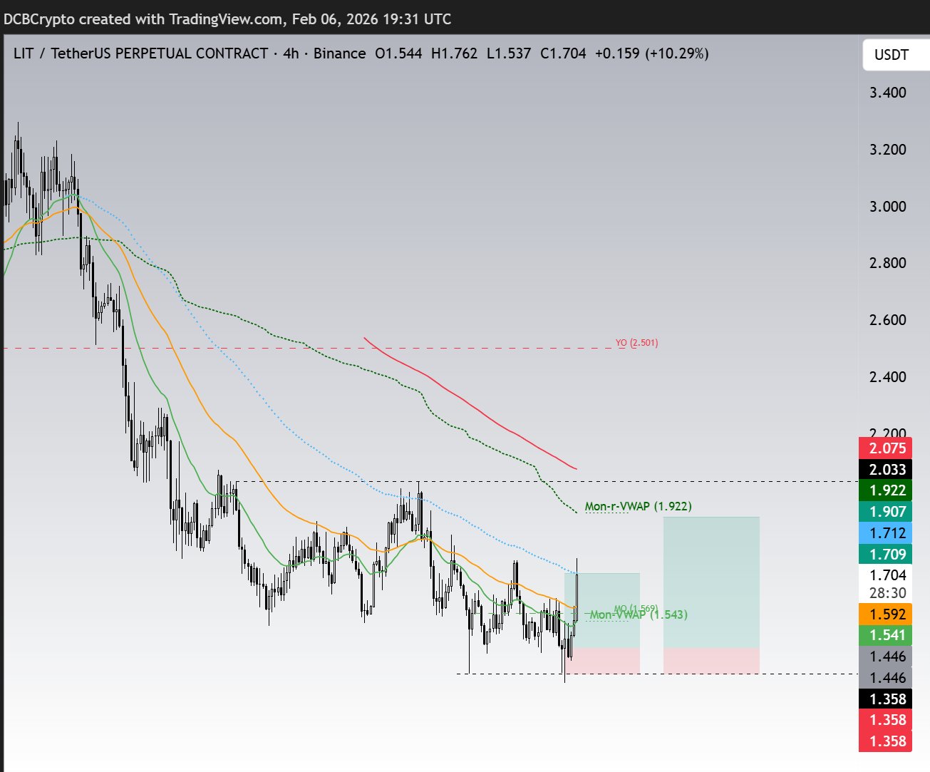 LIT shows clear signs of a bottom reversal, the author is bullish on its upside potential, target Mon-r-VWAP.