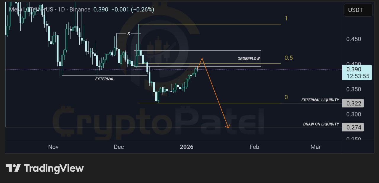 When deciding whether it’s a good time to buy or sell Metal DAO (MTL), it’s important to first align with your own trading strategy and risk profile.Long-term investors and short-term traders often interpret market conditions differently, so your decision should reflect your personal approach. According to the latest MTL 4-hour technical analysis, the current trading signal is Hold. According to the latest MTL 1-day technical analysis, the current signal is Hold.