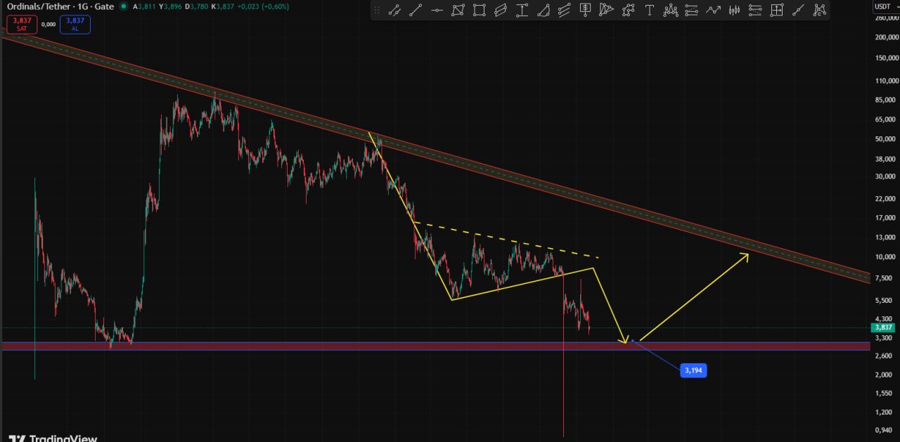 ORDI fell to $3, and the author believes this is a good buying opportunity, expecting a rebound from $3.194.