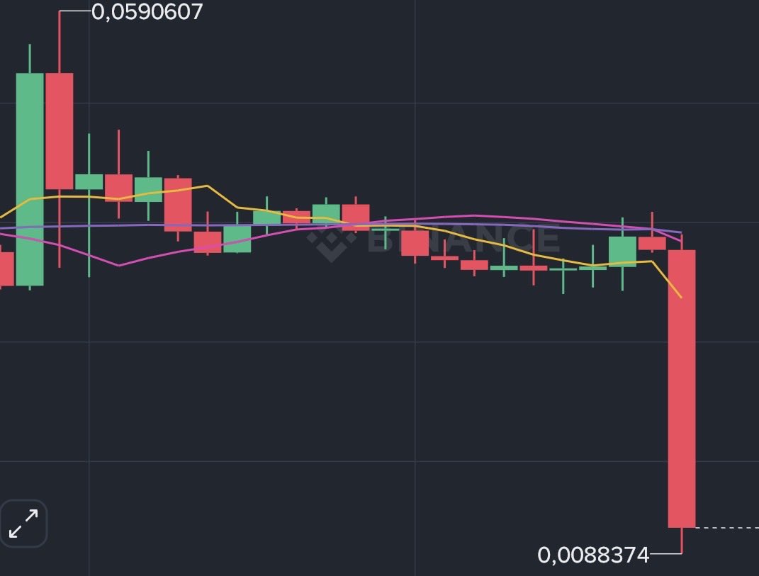 PORT coin experienced an instant 90% price plunge due to a suspected hack, and the candlestick chart shows a sharp decline.